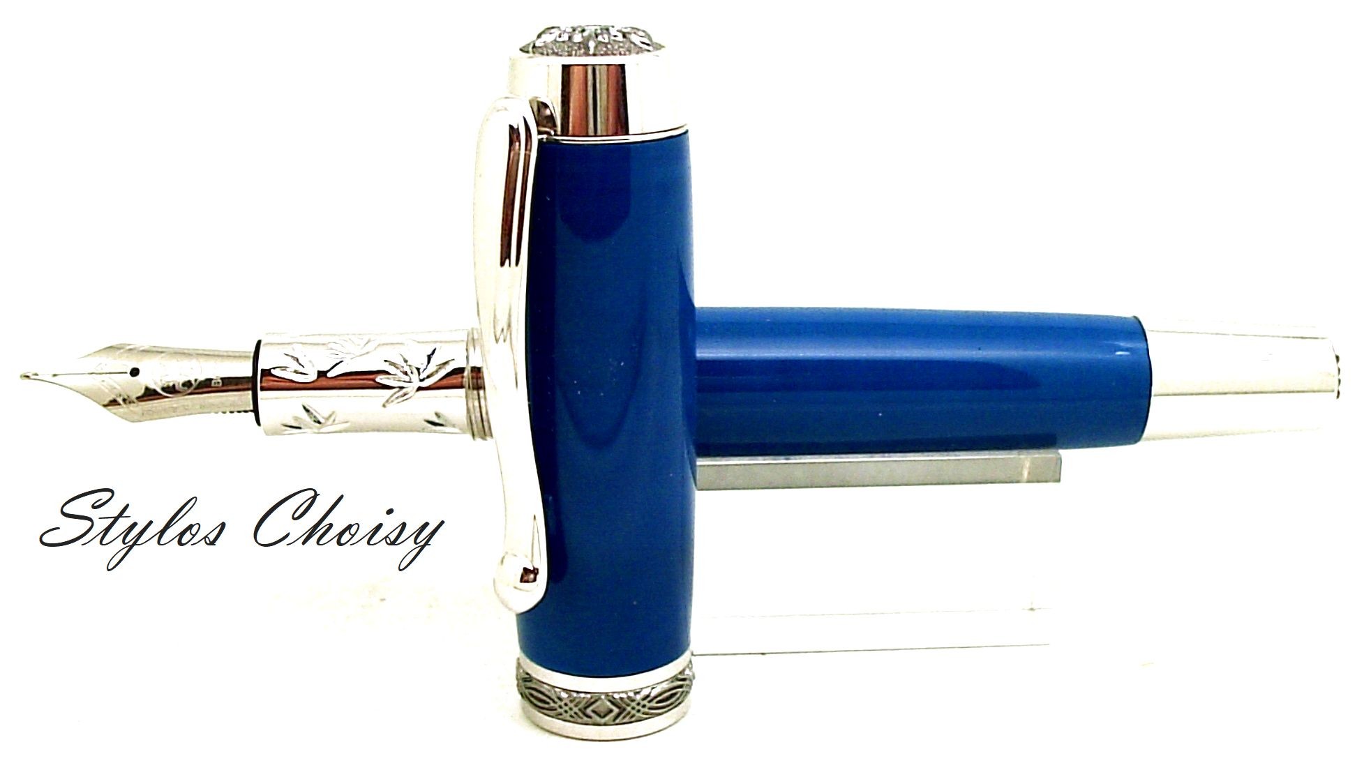 Plume Réflexion Senior en galalithe bleue, platine et titane
