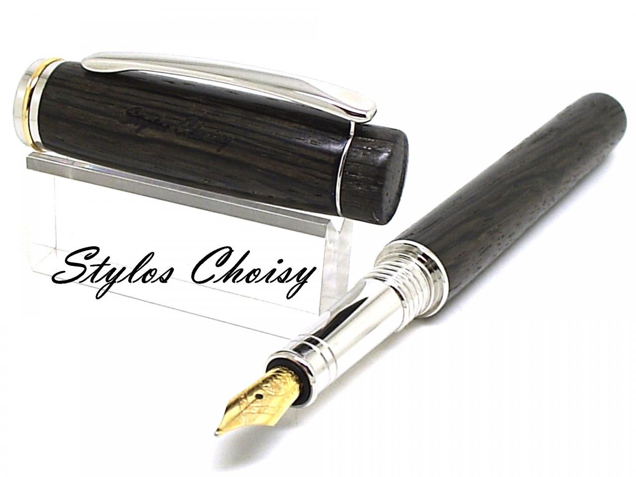 Stylo plume collection Confidence créé sur mesure, chêne de tourbière âgé de 5500 ans, attributs platine et or 14 carats équipé d'une plume Bock or 18 carats. Pièce d'exception