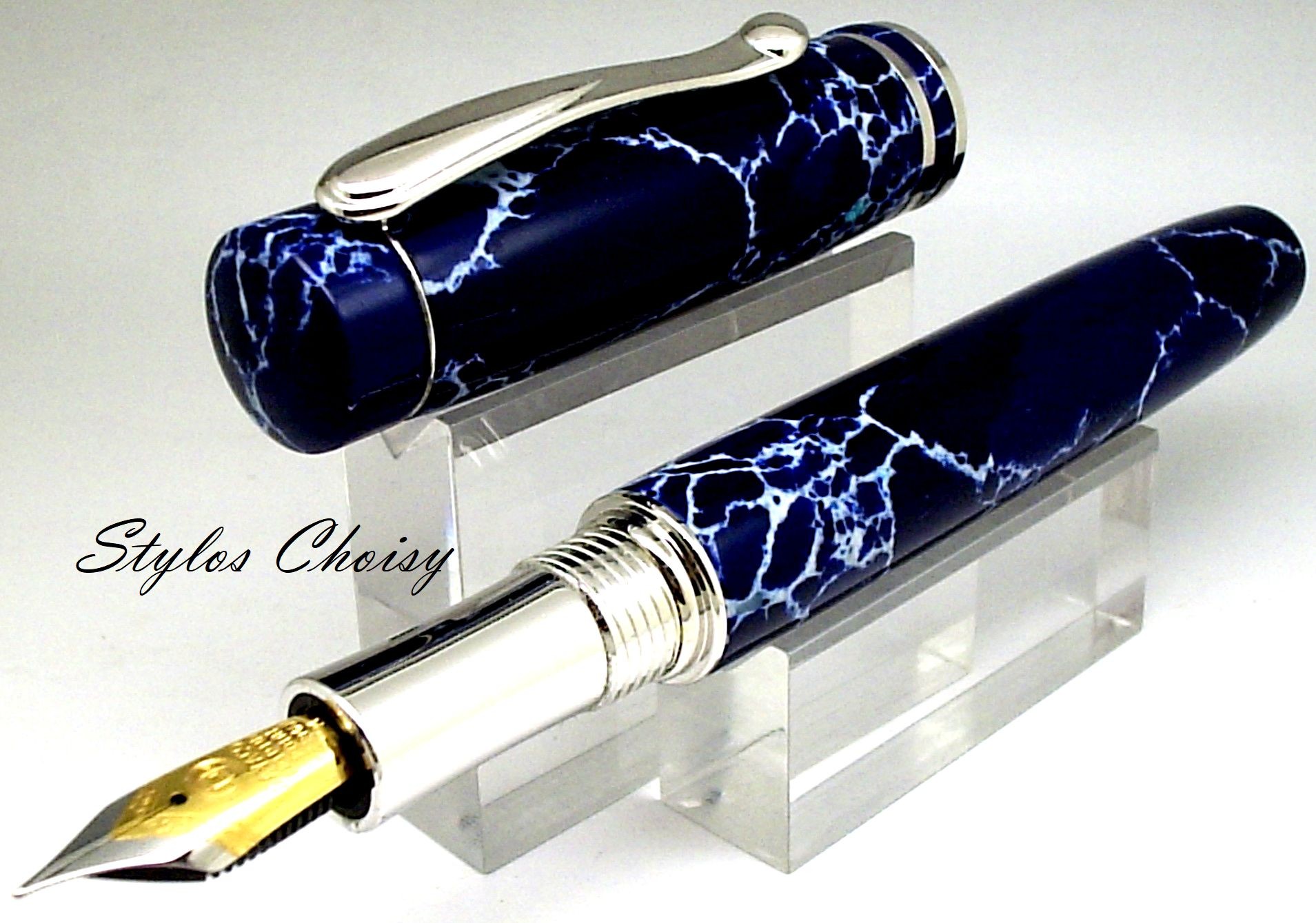 Plume "Elegance Senior" en sodalite du Brésil et rhodium