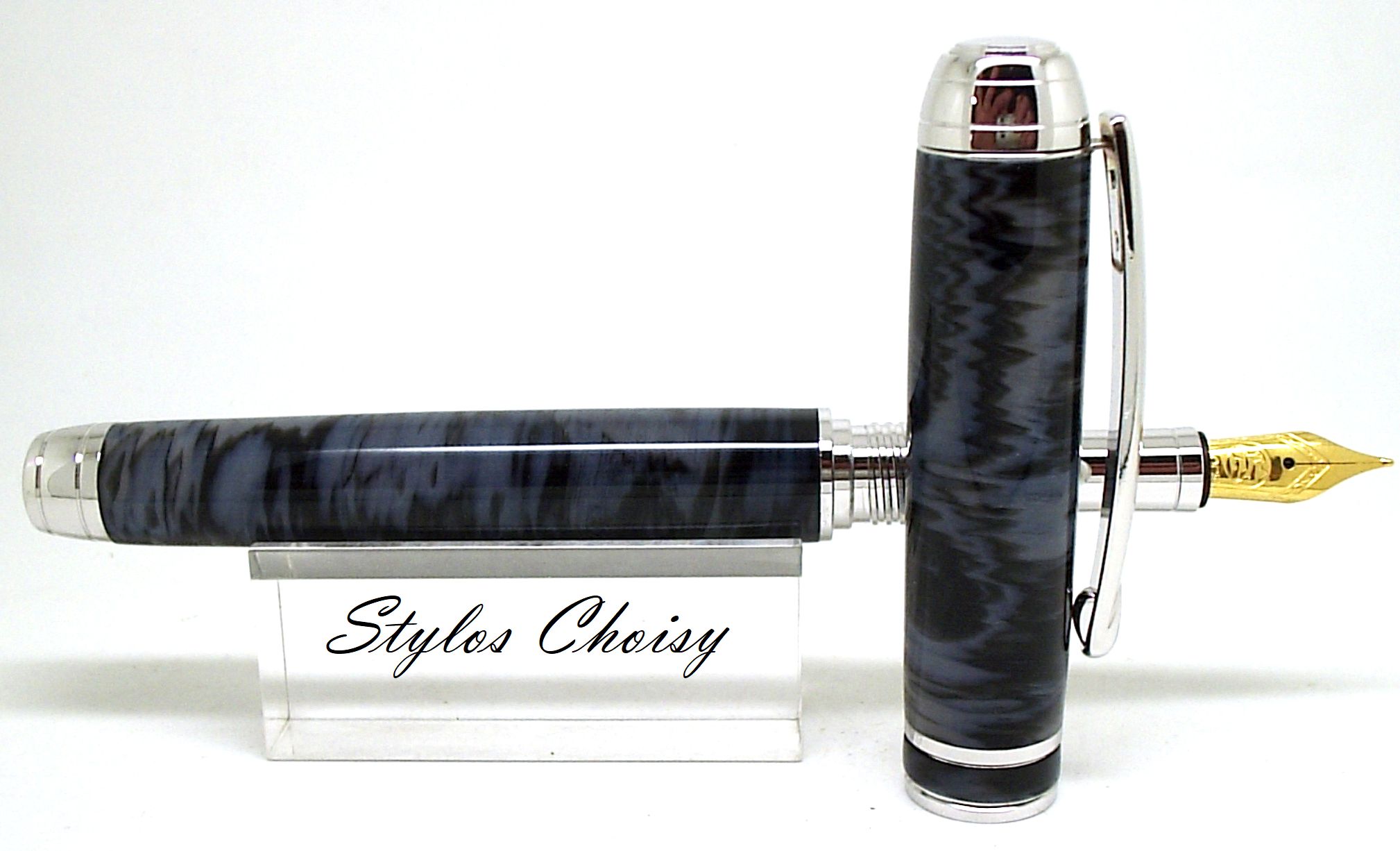 galalithe gris-noir flammé, monture platine, plume plaquée or 23k
