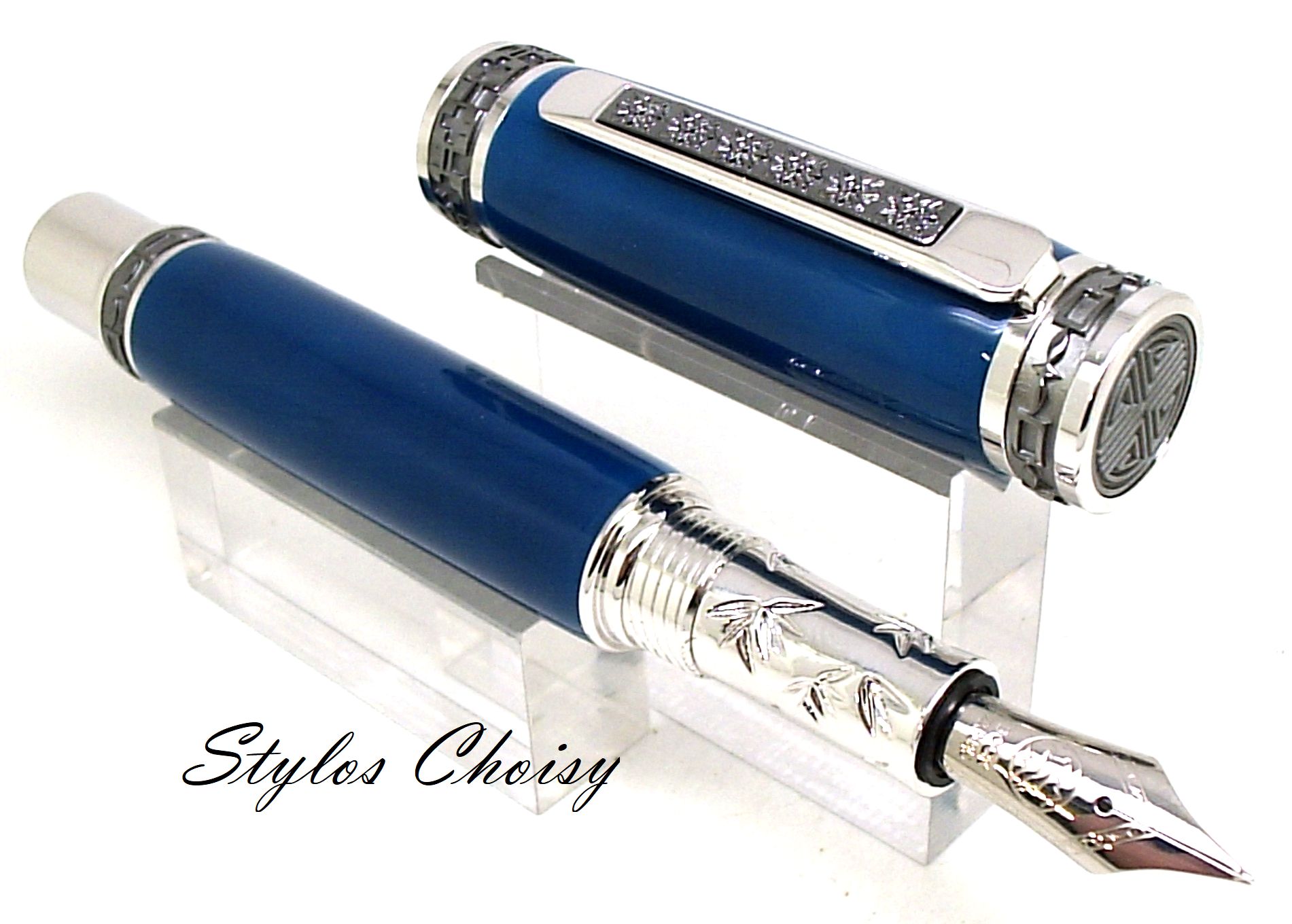 Galalithe au bleu indéfinissable, monture platine, plume palladium 23k