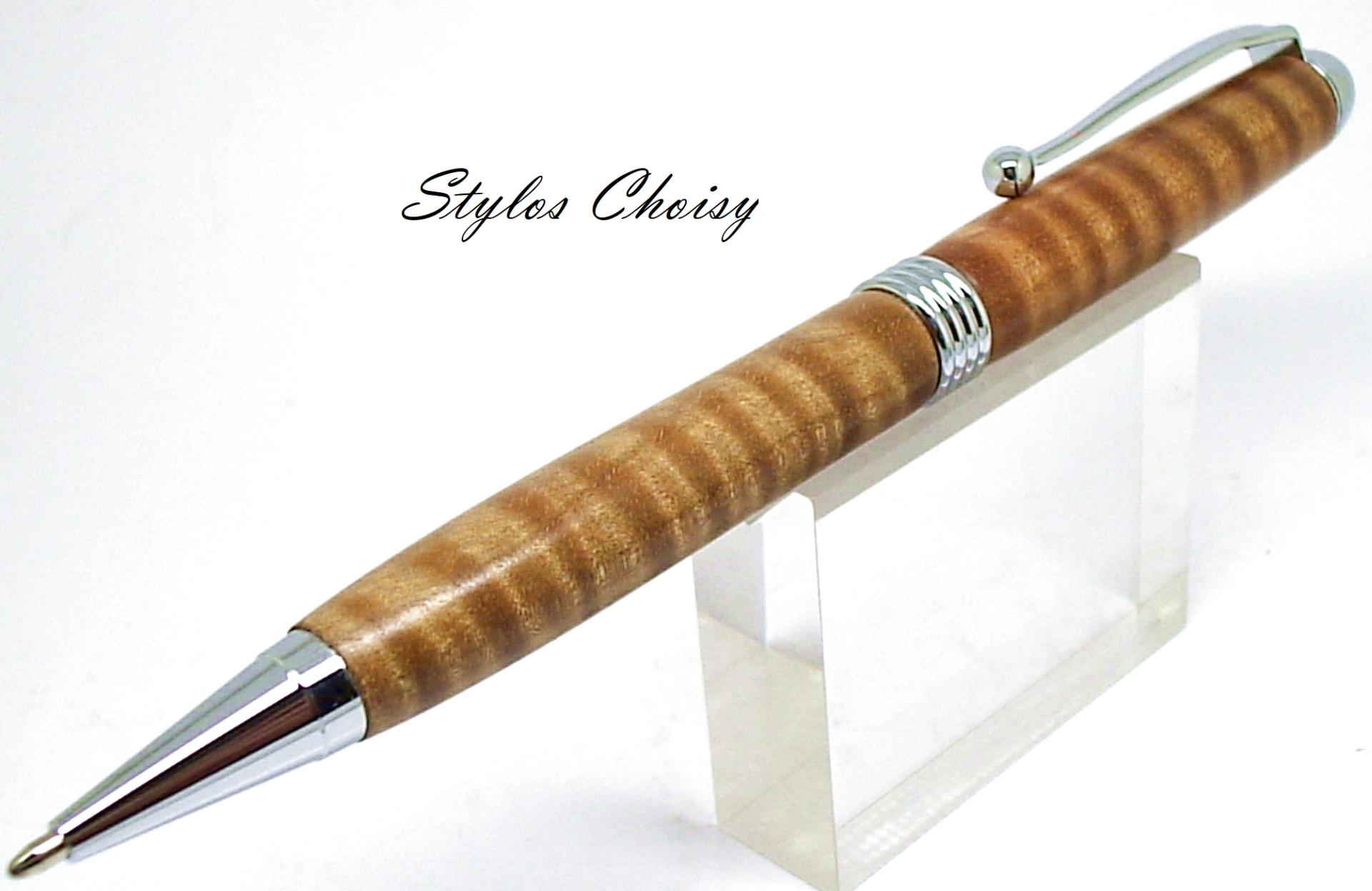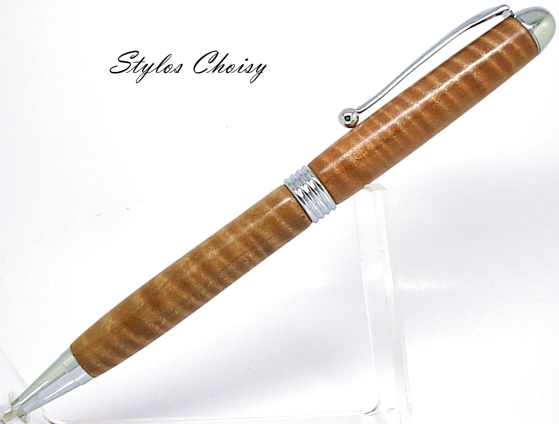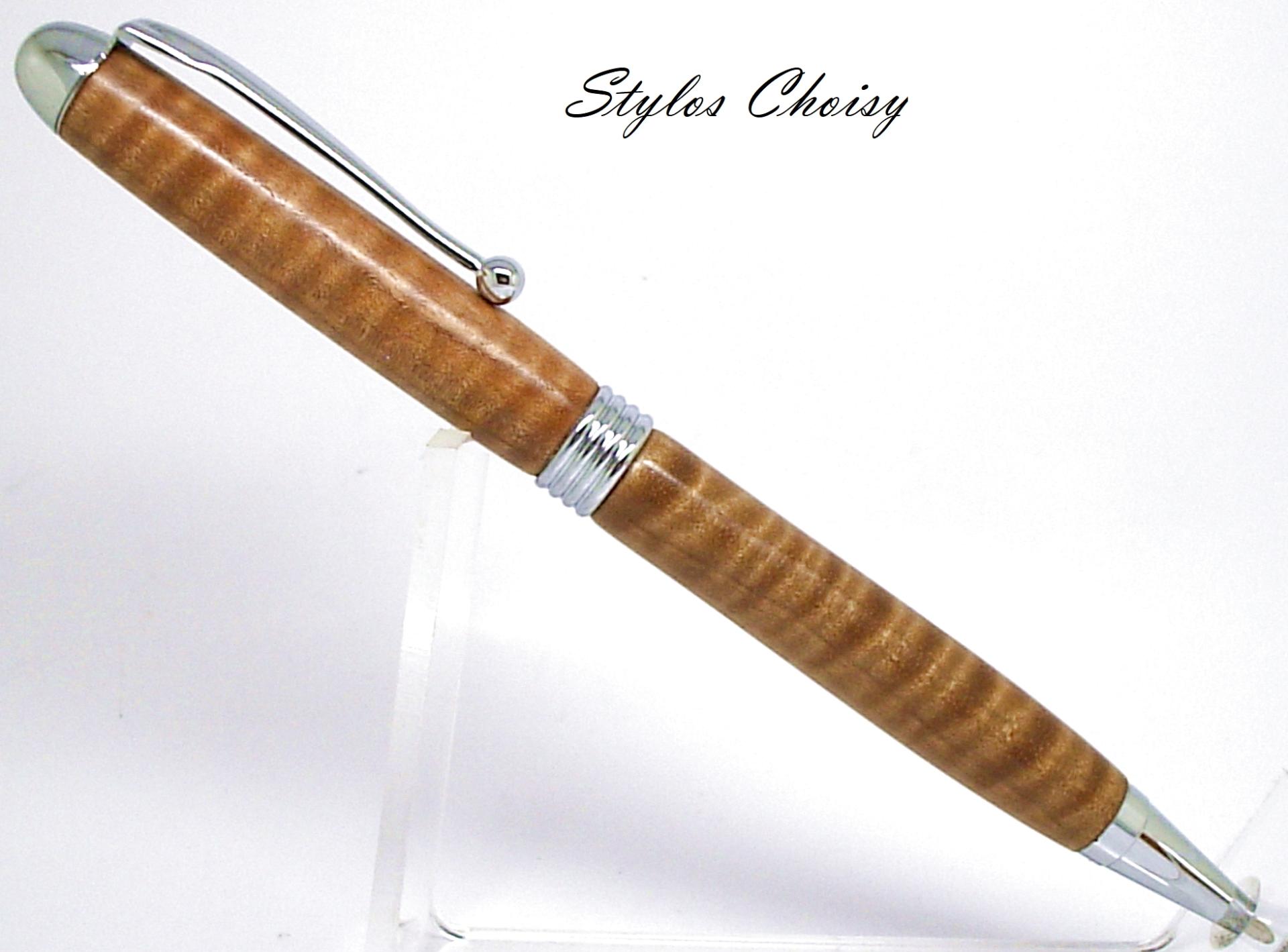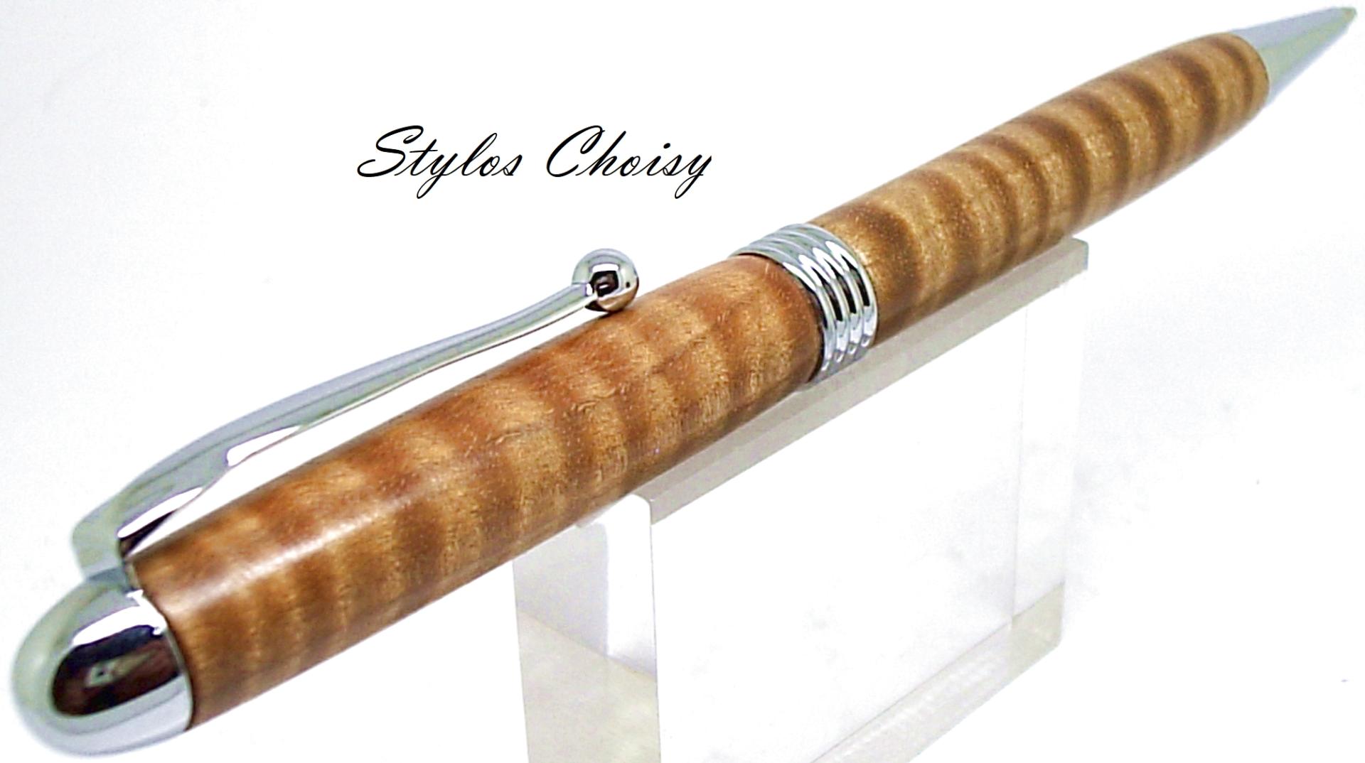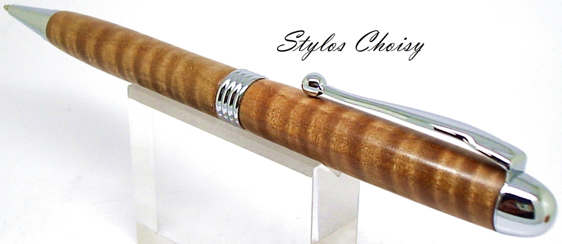 Dernier stylo dans ce bois exceptionnel. Monture plaquée chrome.